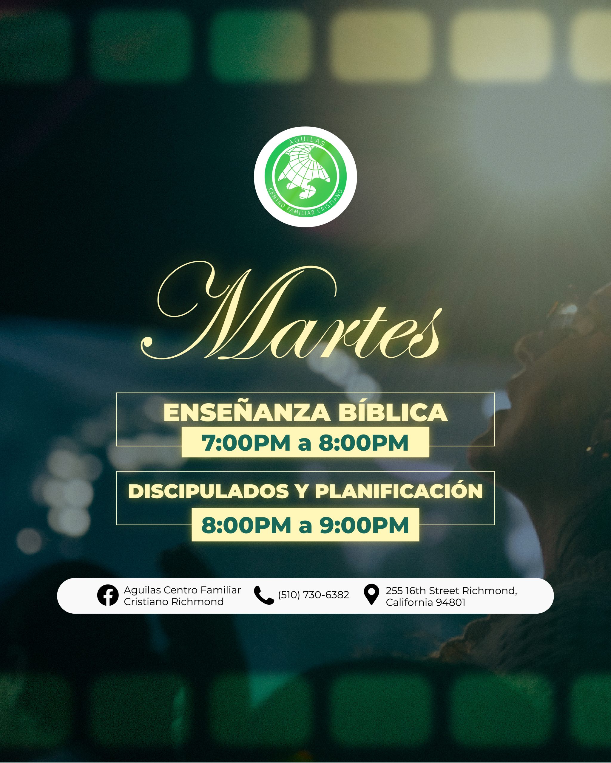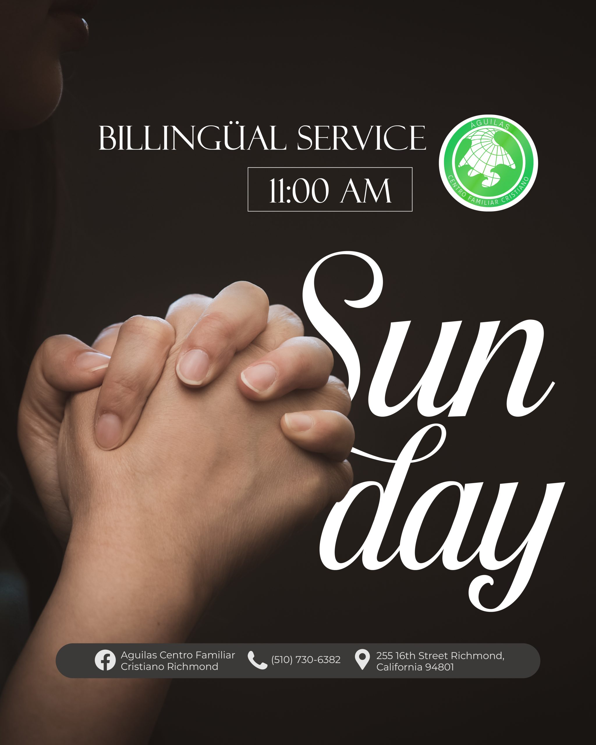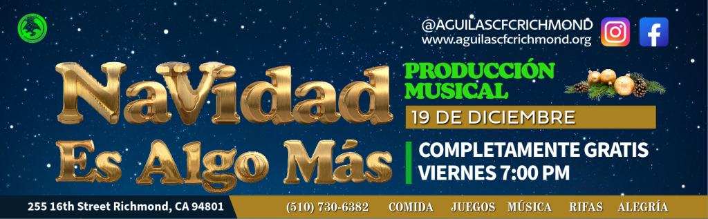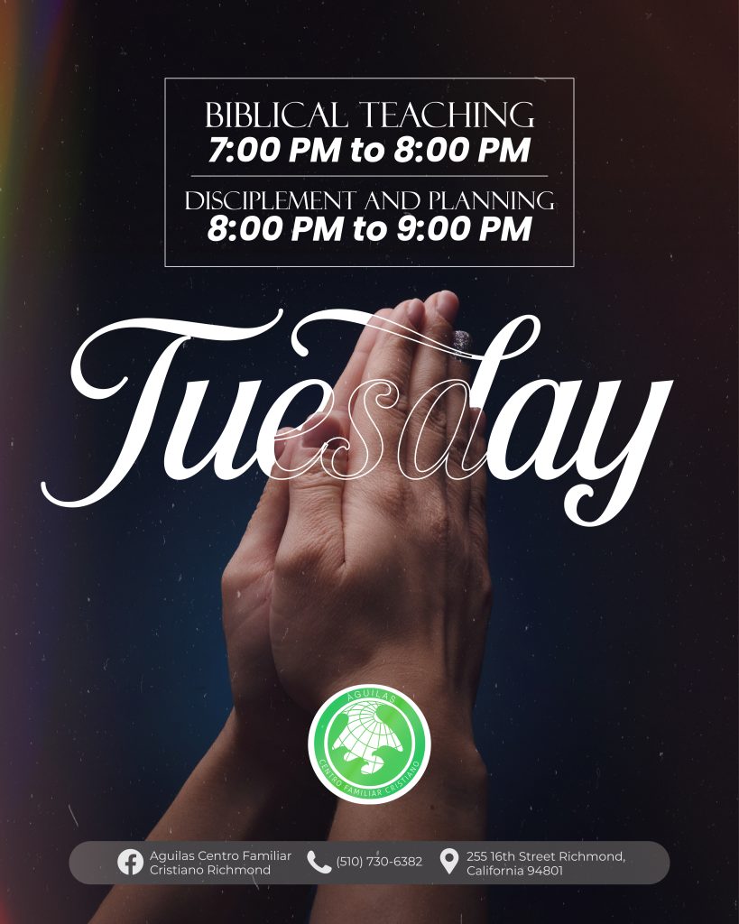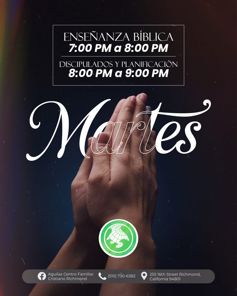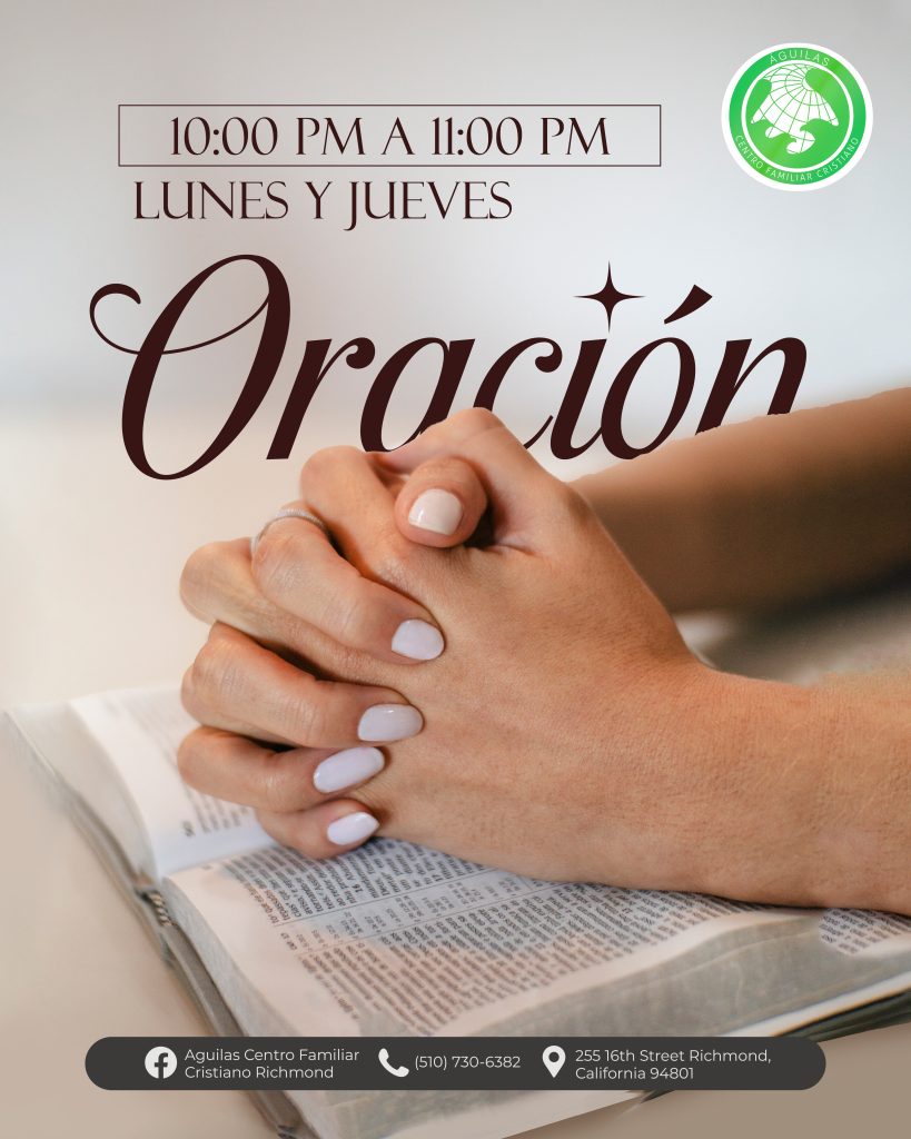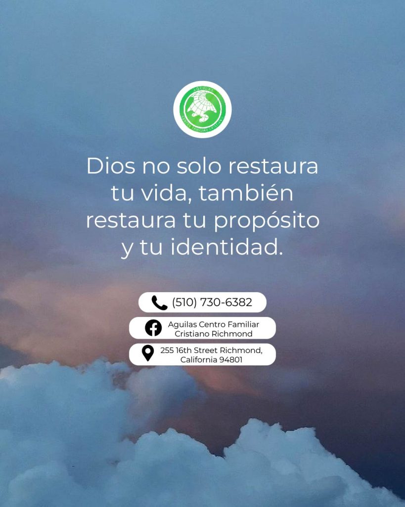 Águilas Centro Familiar Cristiano Richmond tiene una larga y orgullosa historia de servicio a la comunidad de Richmond y el Área de la Bahia. A través de la dedicación de nuestro liderazgo, pastores y voluntarios, estamos comprometidos con las enseñanzas de Jesucristo y estamos aquí para difundir el mensaje de las buenas nuevas de Jesus. Estamos abiertos a adoradores de todas las edades y orígenes, y nos esforzamos por guiar a todos los que adoran con nosotros hacia un amor más profundo por Dios.